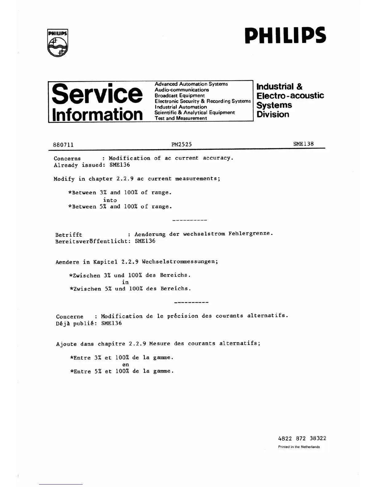 Philips PM2525 - Service Information; Modification of AC Current Accuracy