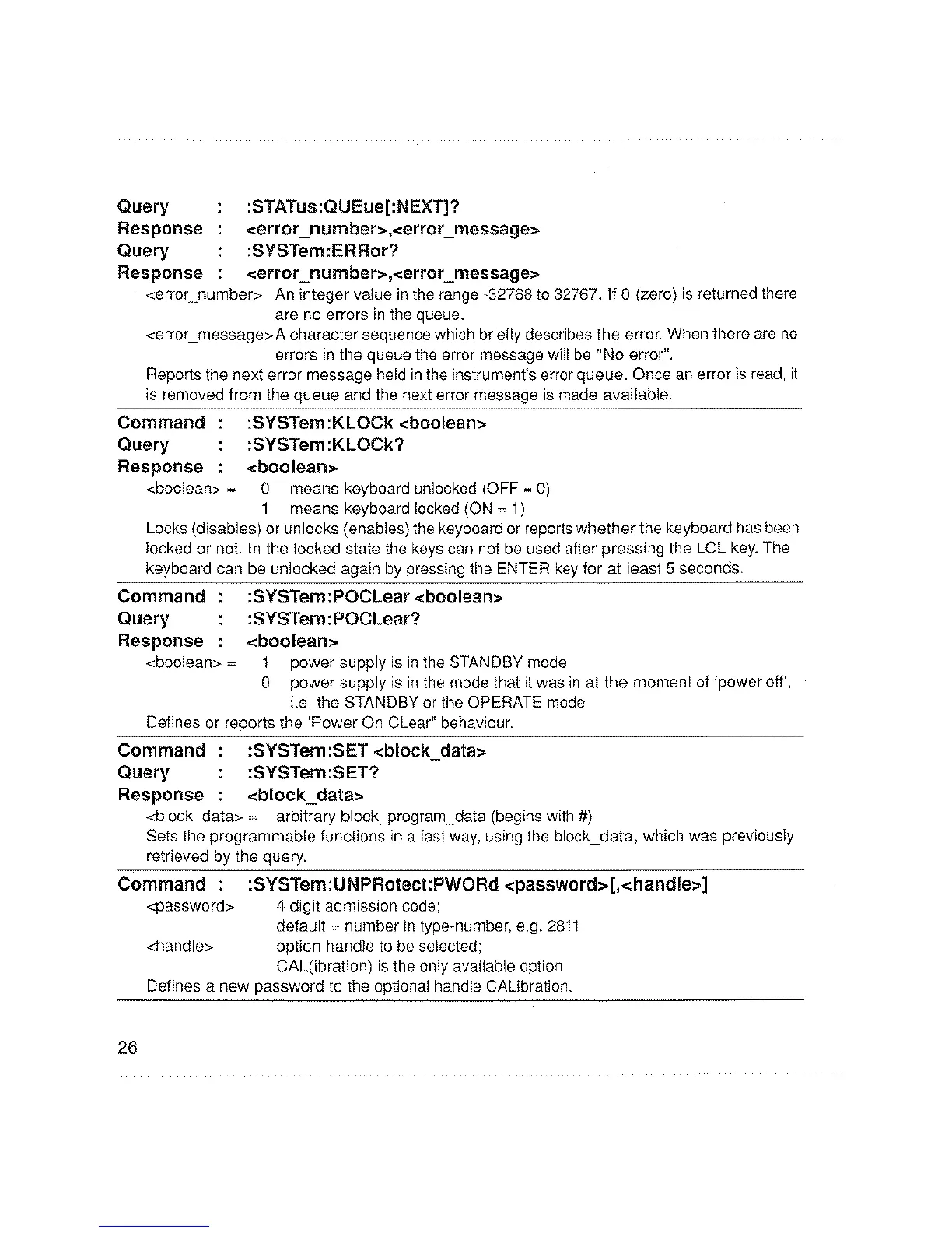 Philips PM2811 - System Commands and Diagnostics; Error Handling and Keyboard Control