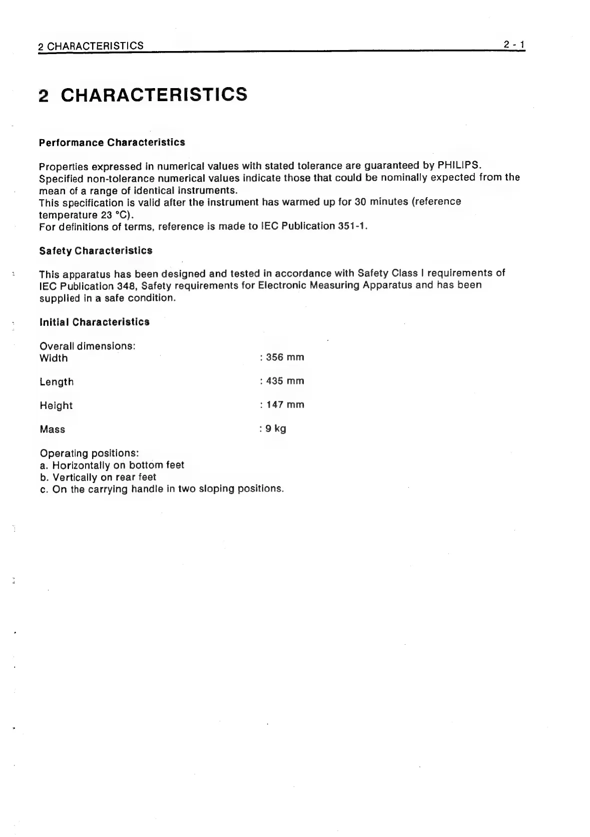 Philips PM3208 - 2 Characteristics