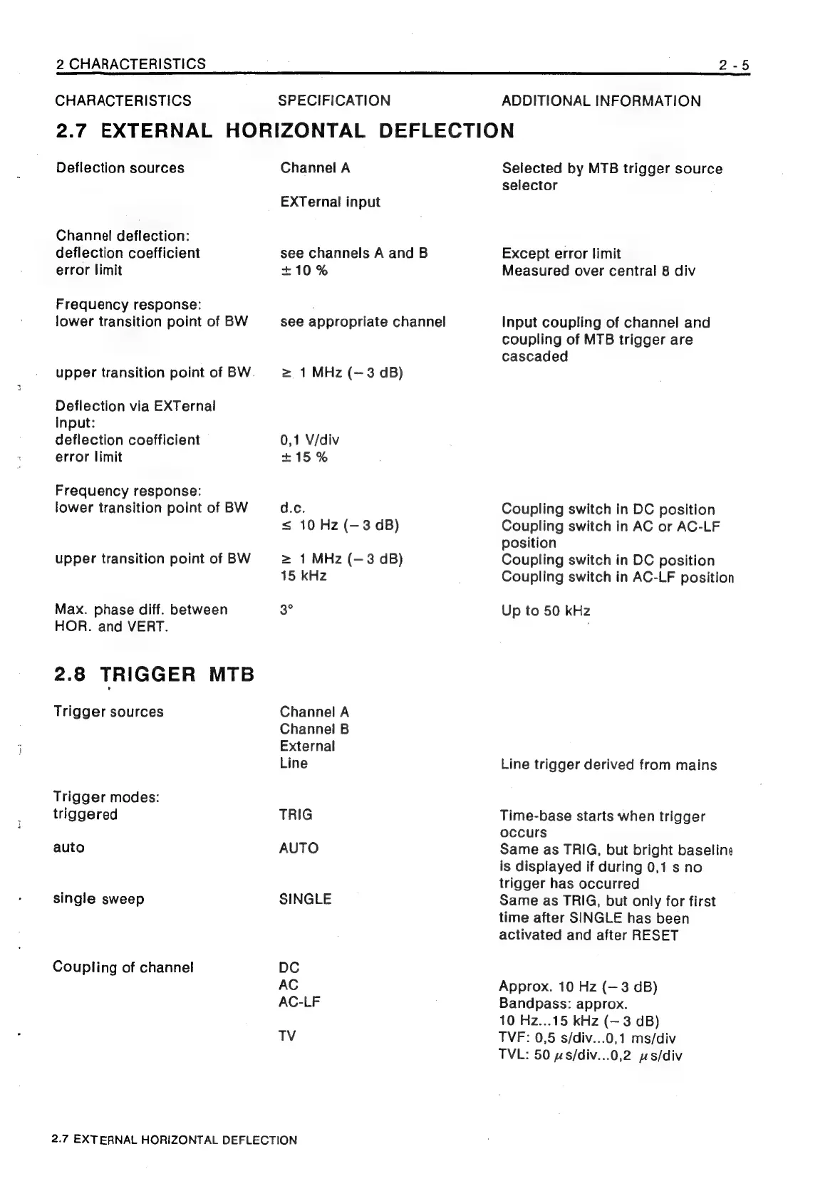 Philips PM3208 - 2.7 External Horizontal Deflection; 2.8 Trigger MTB