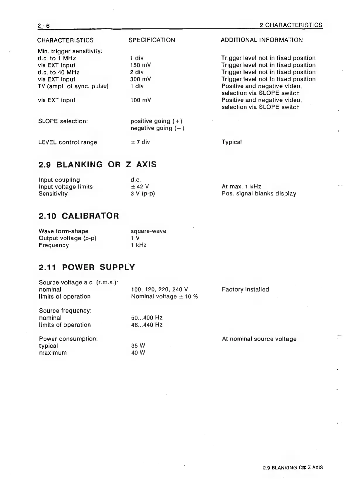 Philips PM3208 - 2.9 Blanking or Z Axis; 2.10 Calibrator; 2.11 Power Supply