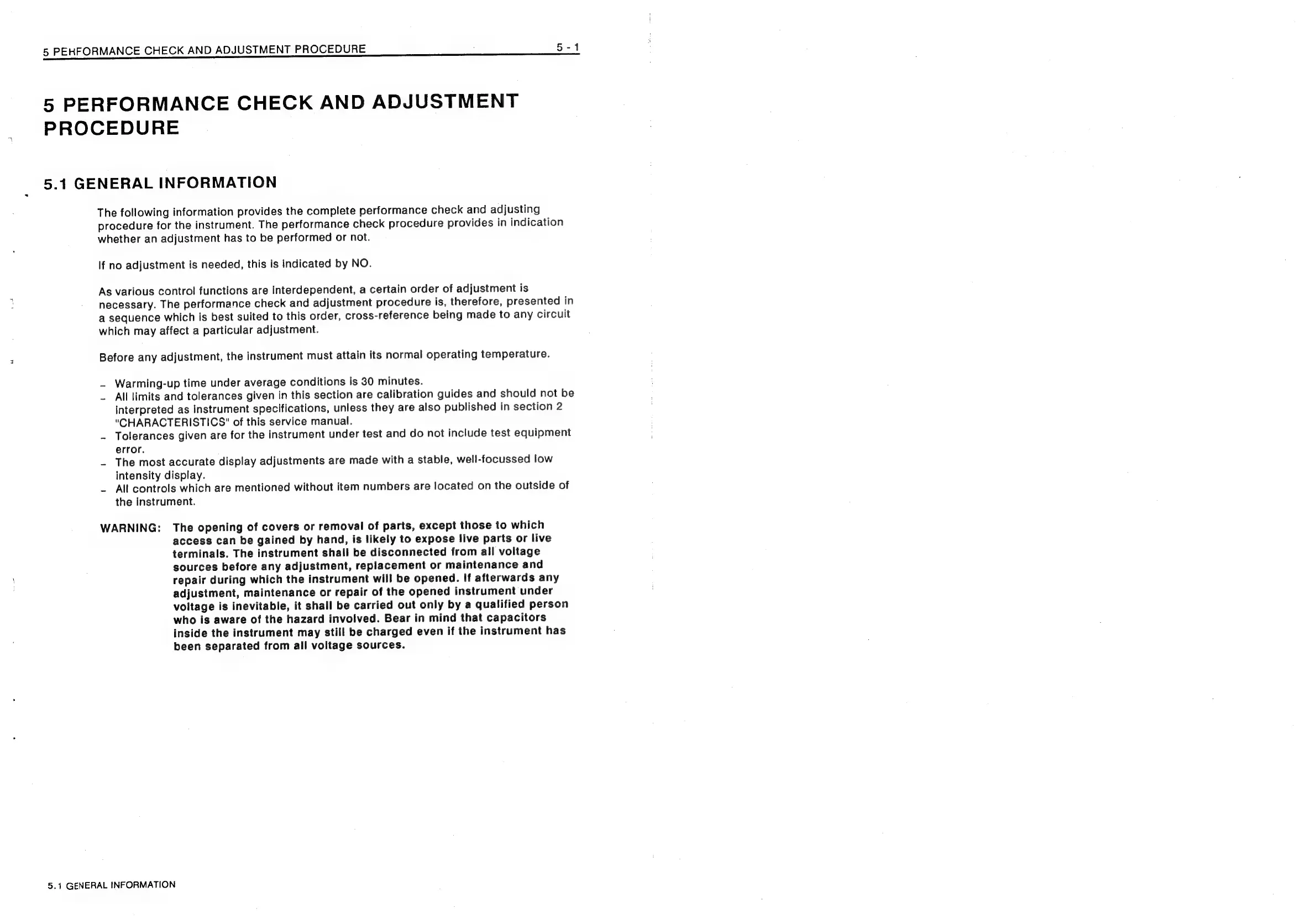 Philips PM3208 - 5 Performance Check and Adjustment Procedure; 5.1 General Information