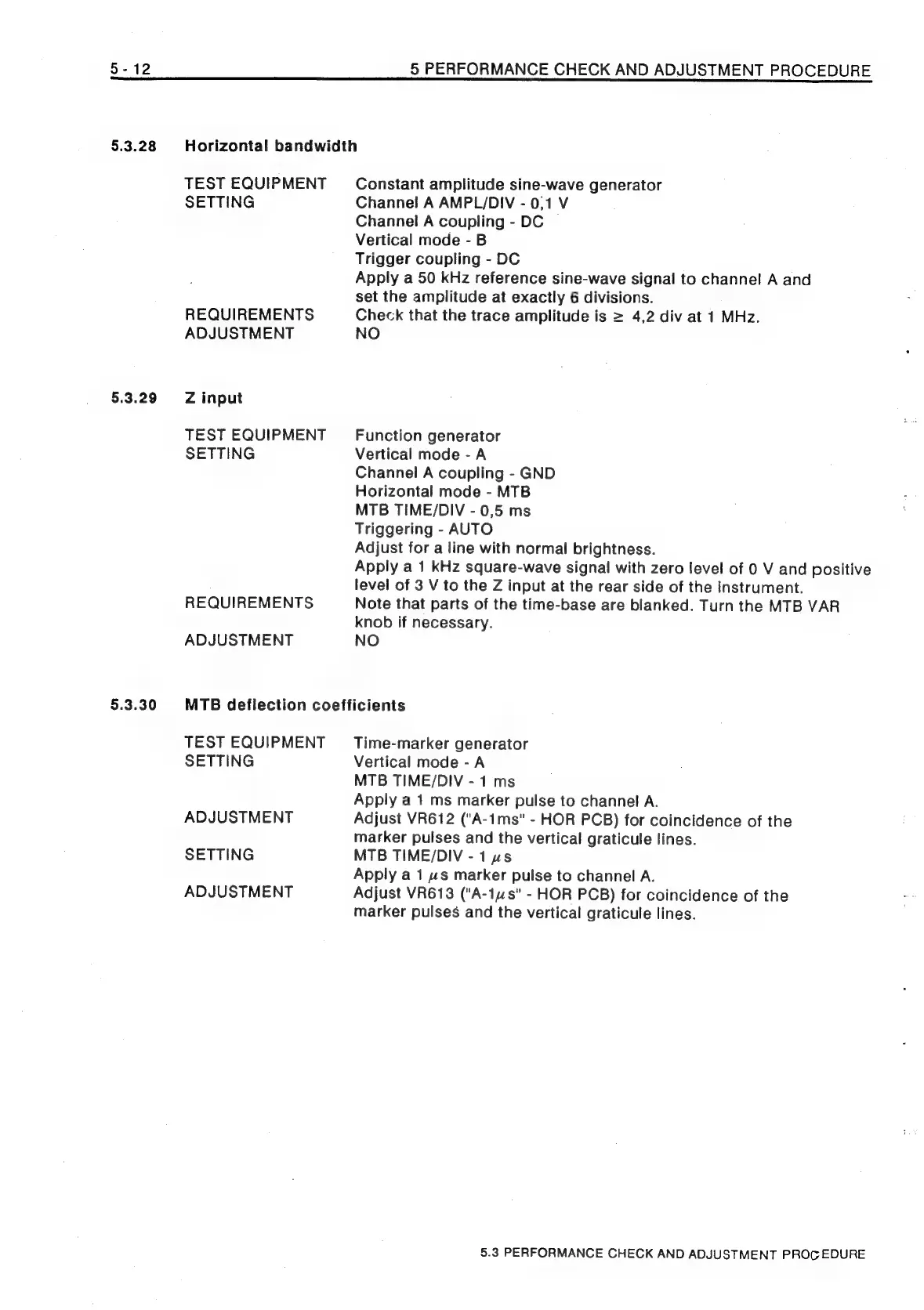 Philips PM3208 - 5.3.28 Horizontal Bandwidth; 5.3.29 Z Input; 5.3.30 MTB Deflection Coefficients