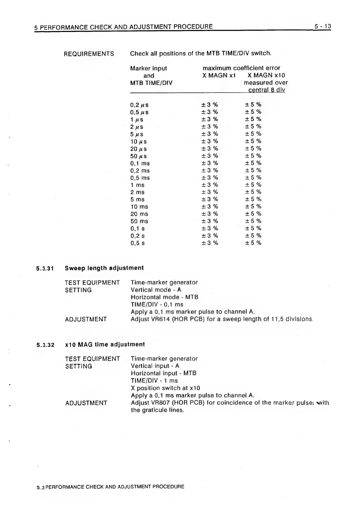 Philips PM3208 - 5.3.31 Sweep Length Adjustment; 5.3.32 x10 MAG Time Adjustment