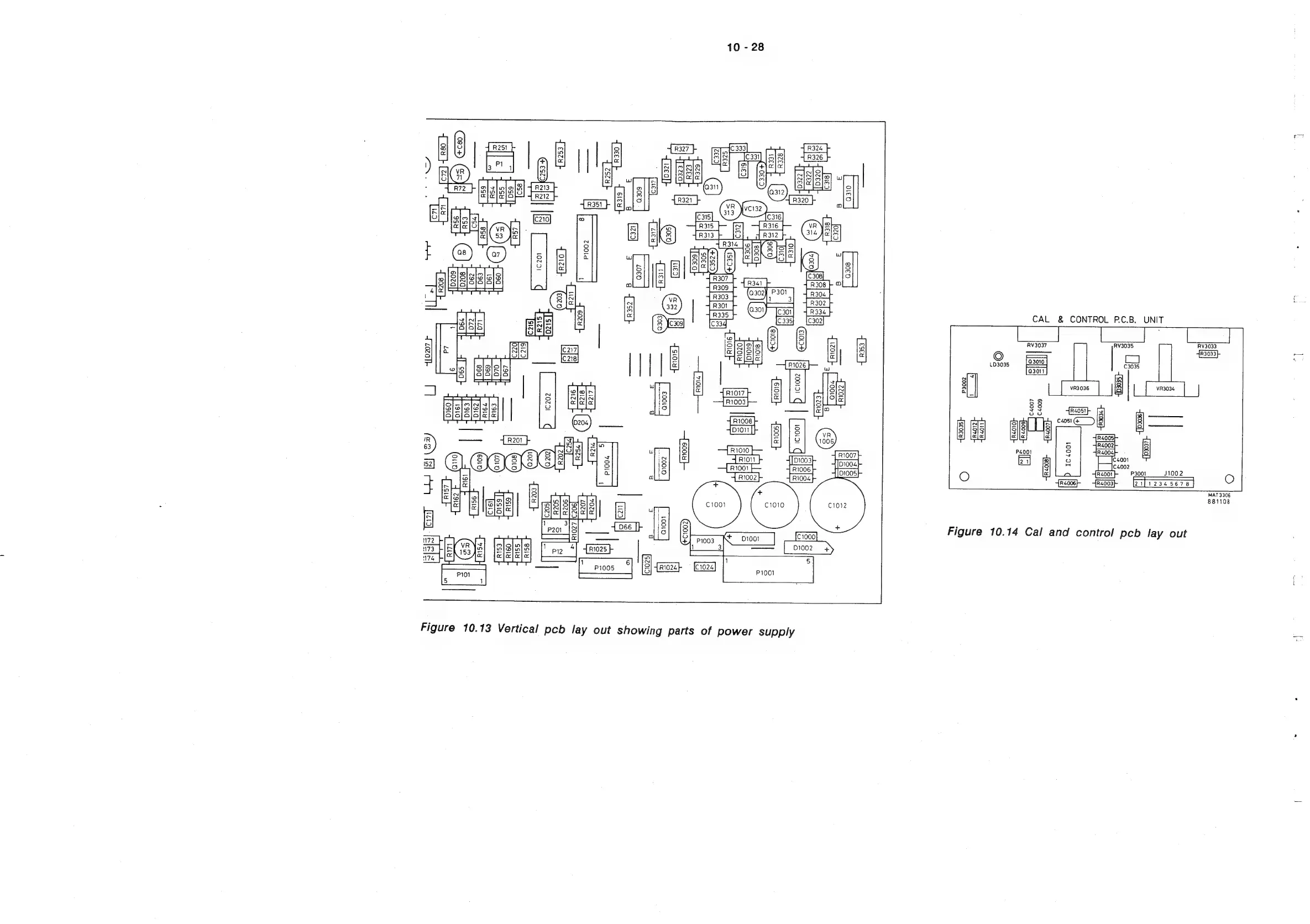 Philips PM3208 - Figure 10.13 Vertical PCB Lay Out Showing Parts of Power Supply; Figure 10.14 Cal and Control PCB Lay Out