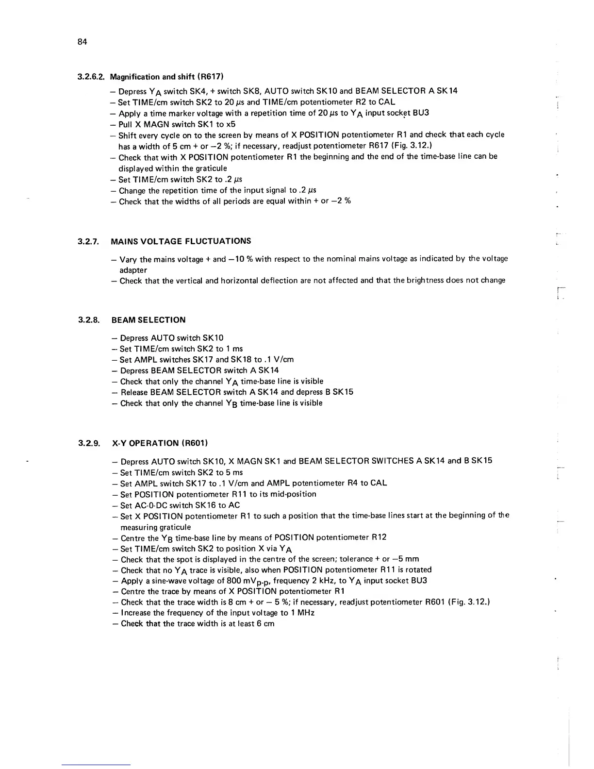 Philips pm3232 - Mains Voltage Fluctuations; Beam Selection; X-Y Operation (R601)