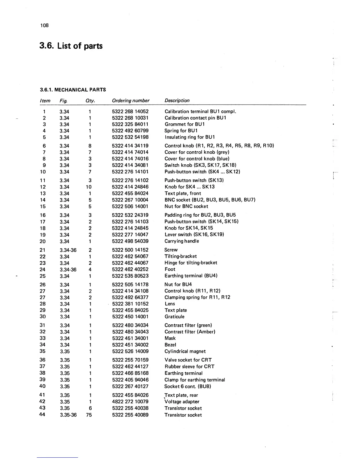 Philips pm3232 - List of Parts; Mechanical Parts
