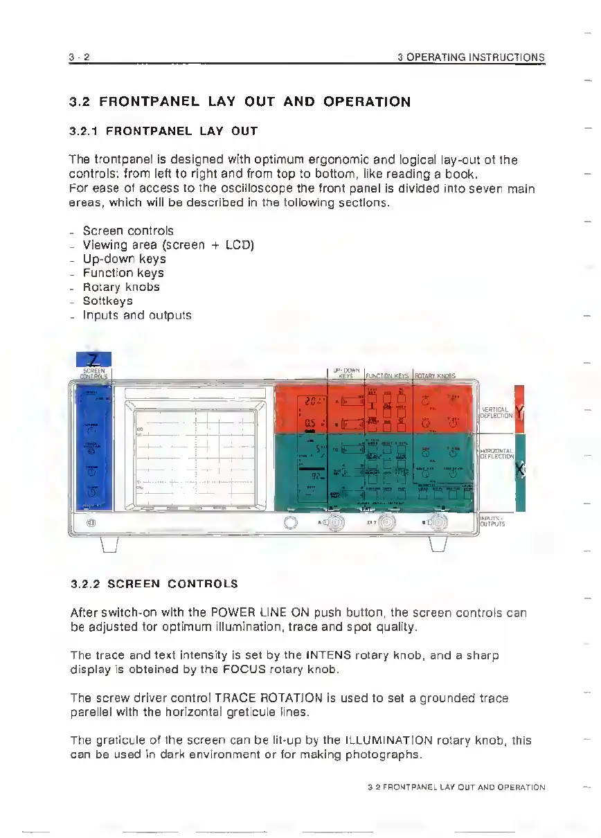 Philips PM3350A - Frontpanel Lay out and Operation; Frontpanel Lay Out.3; Screen Controls.3 -2