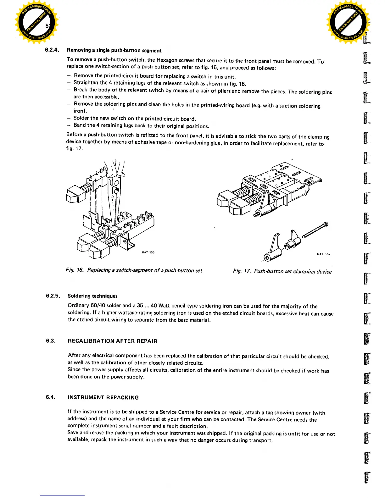 Philips PM8940 - Recalibration after Repair; Instrument Repacking; Removing a Single Push-Button Segment; Soldering Techniques