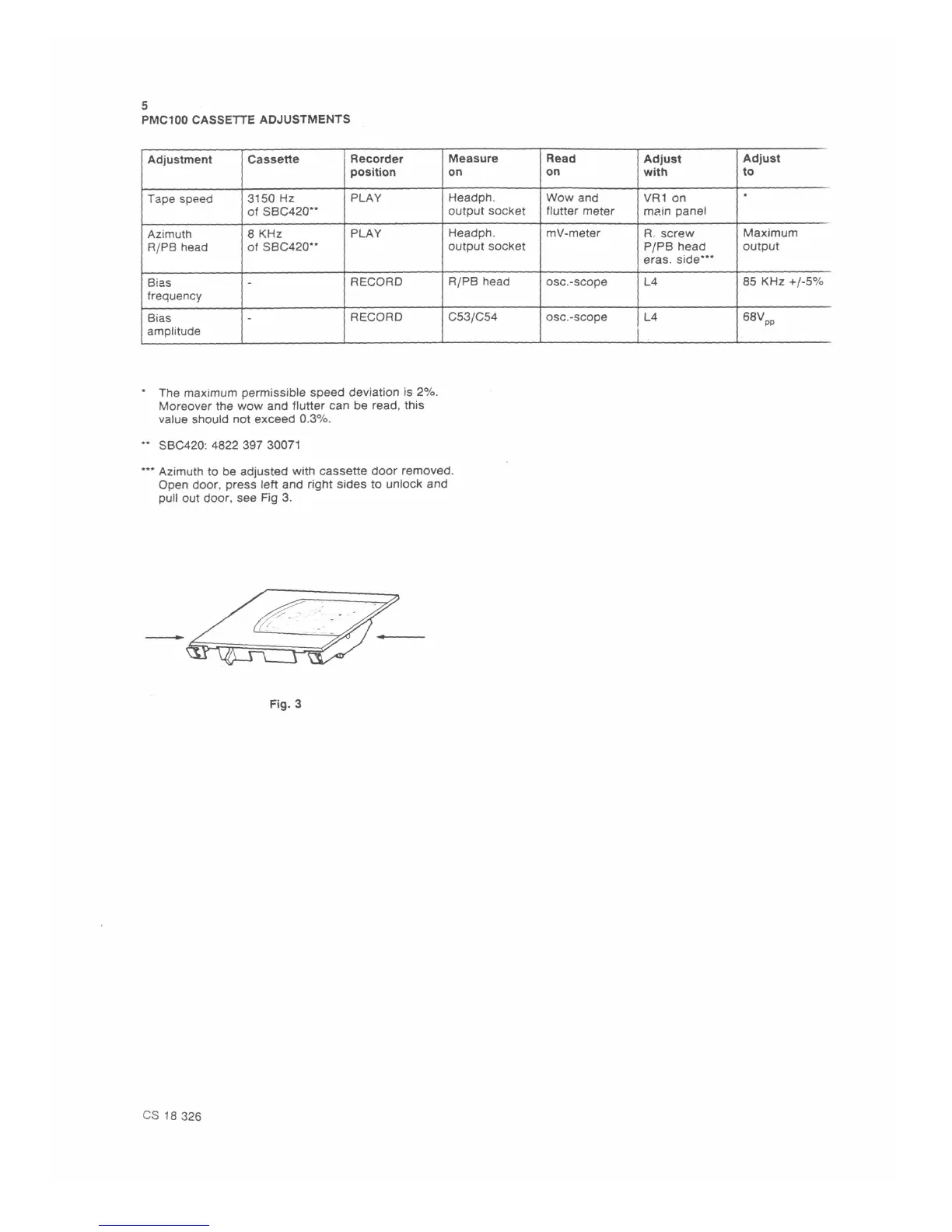 Philips PMC100 - Cassette Adjustments; Tape Speed Adjustment; Azimuth Head Alignment; Bias Frequency Calibration