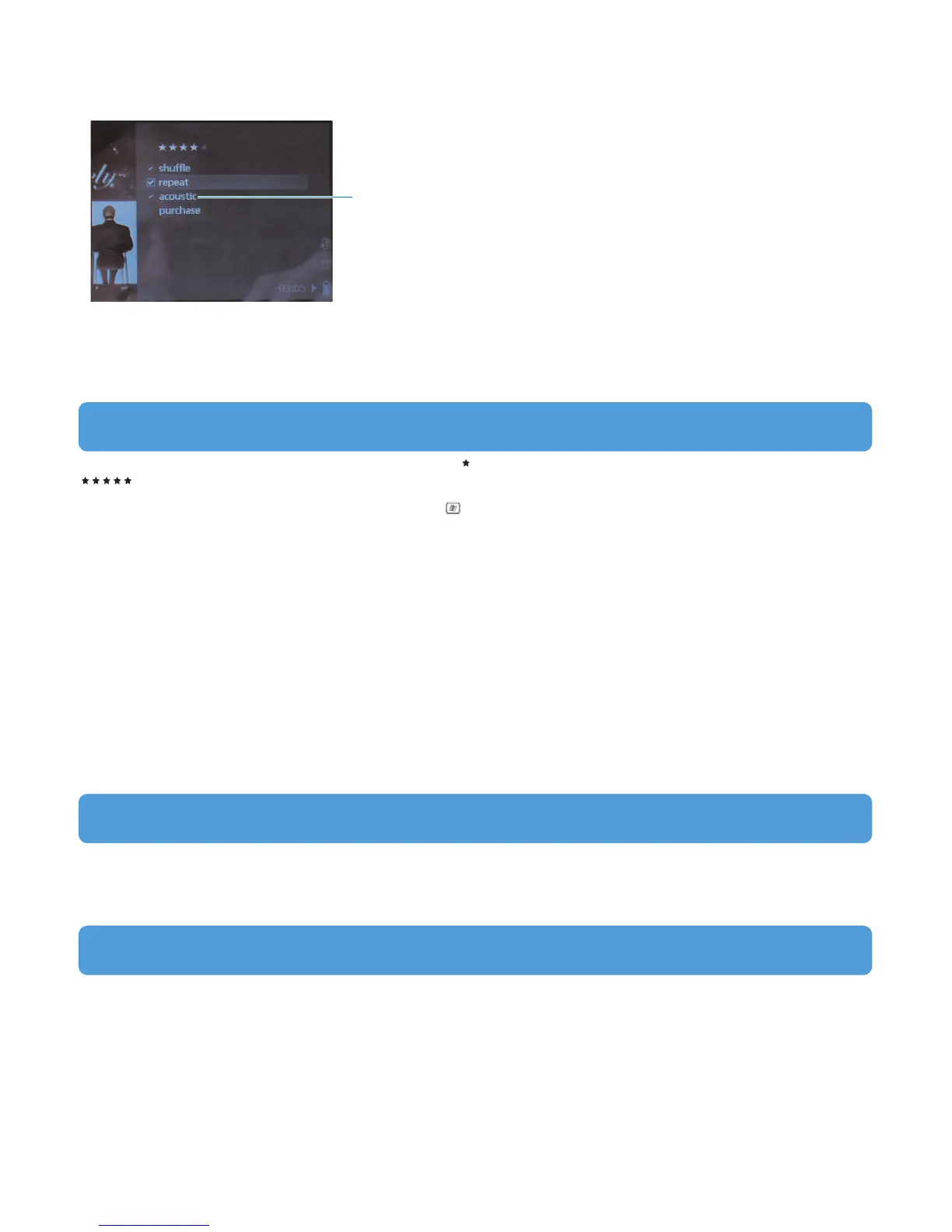 2 Use 3/4 to highlight Shuffle, Repeat or Equalizer and press OK.