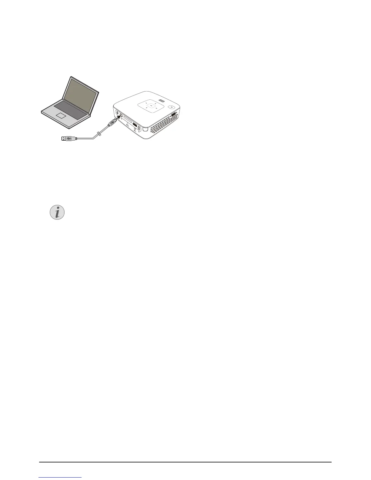 1 Connect the mini-USB socket to the Pocket Projec-