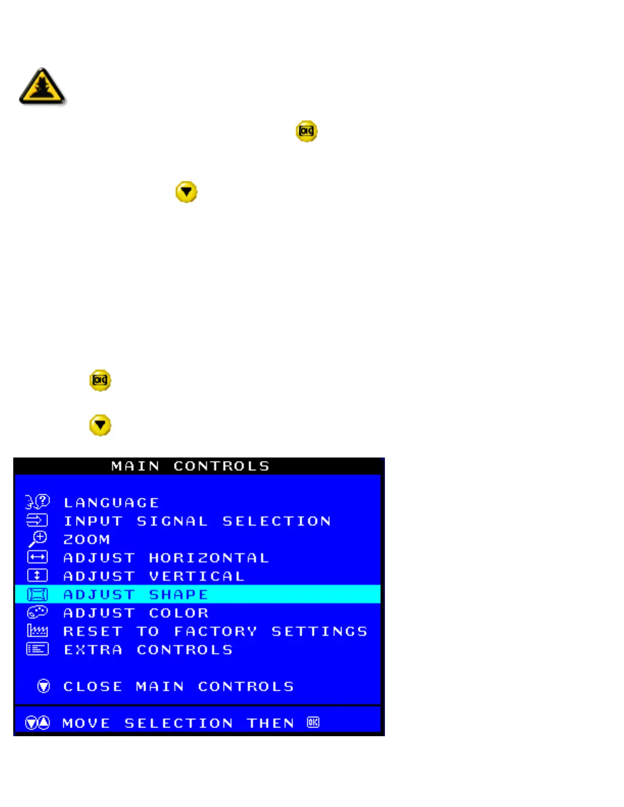 button on the monitor. The MAIN CONTROLS window appears.