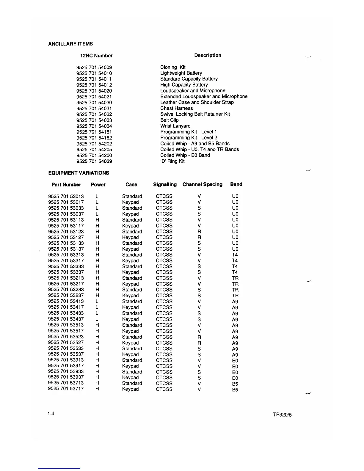 Philips PRP73 - PRP73 Equipment Variations