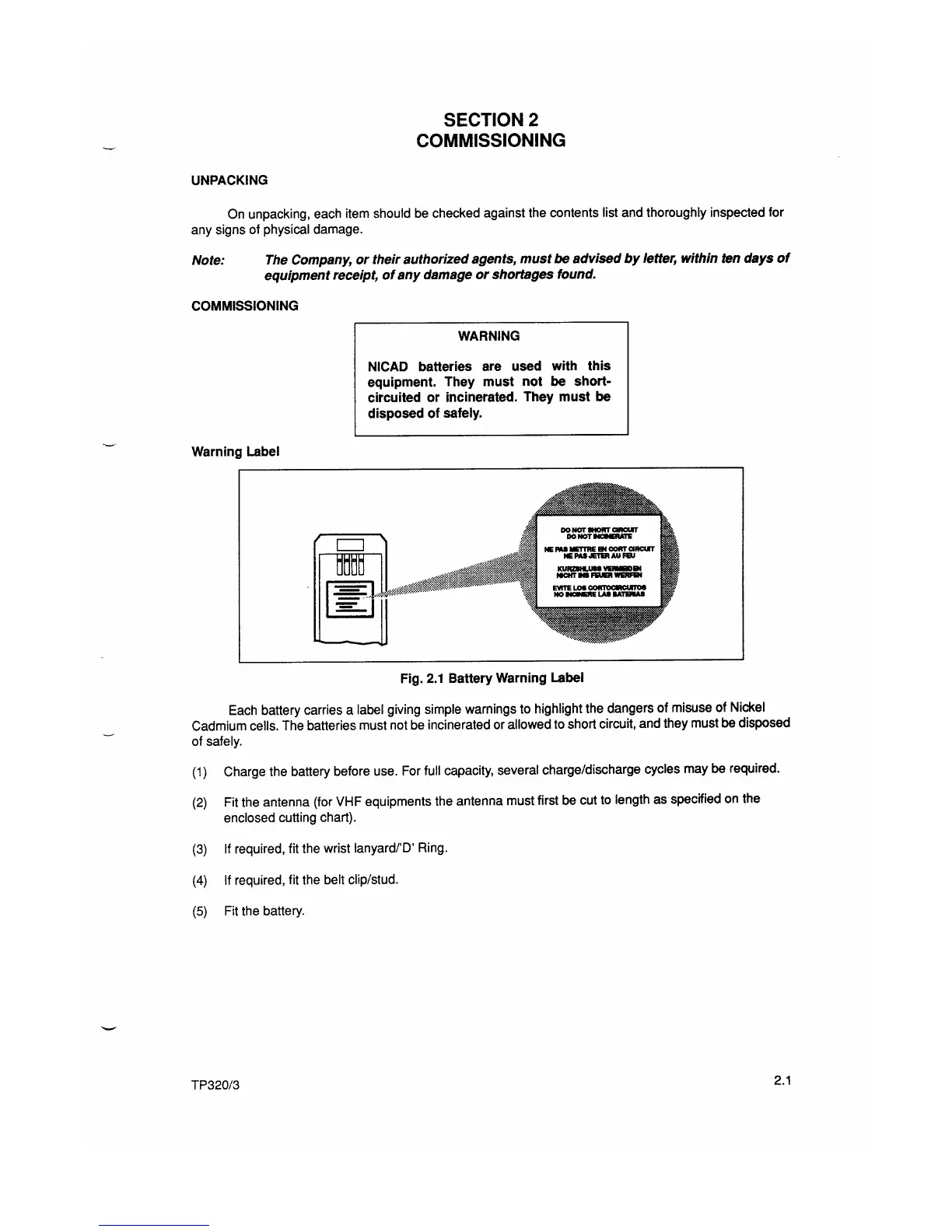 Philips PRP73 - Commissioning; Unpacking; Battery Warning Label
