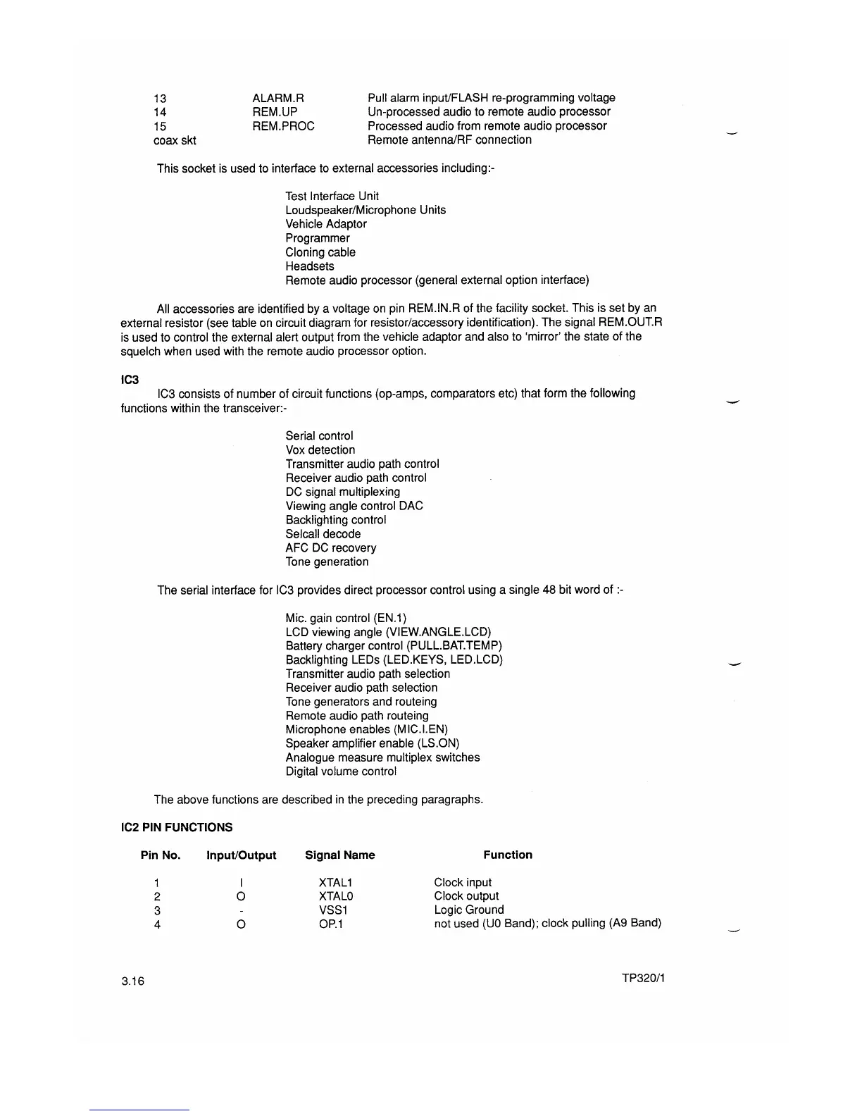 Philips PRP73 - Ic3; IC2 Pin Functions