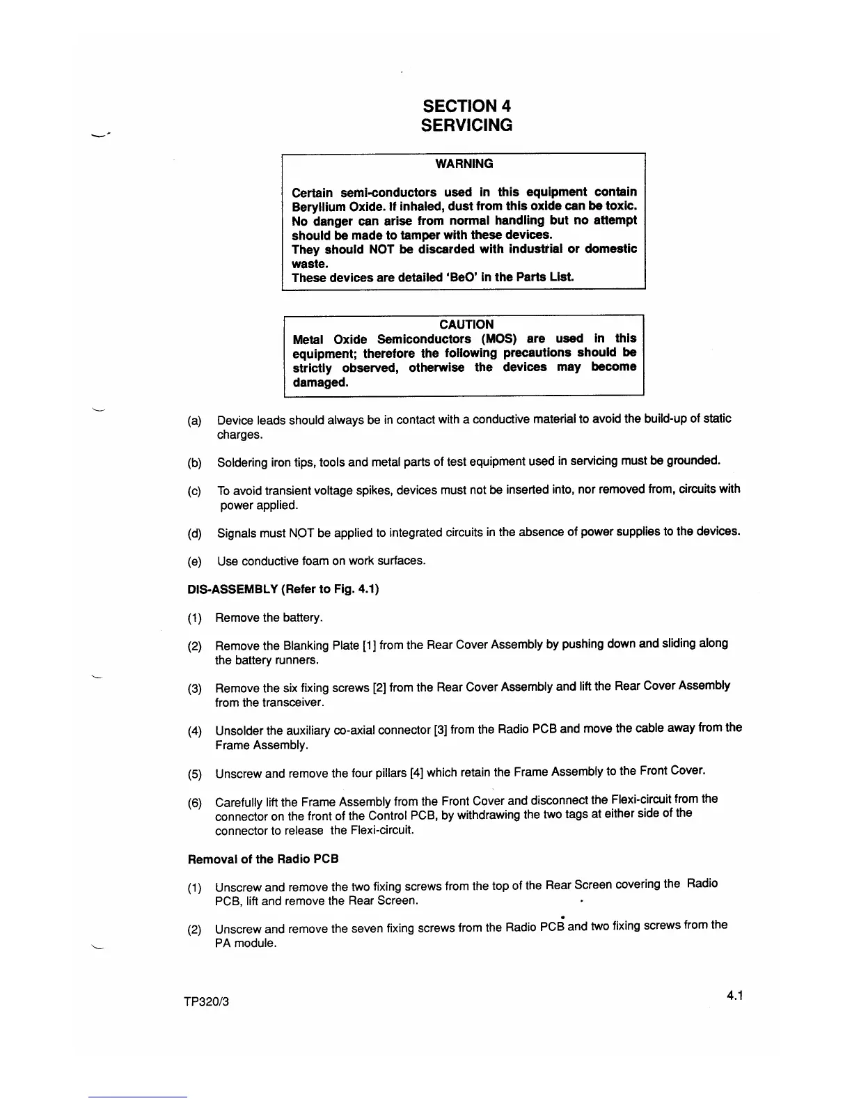 Philips PRP73 - SECTION 4 SERVICING; Transceiver Disassembly and Reassembly