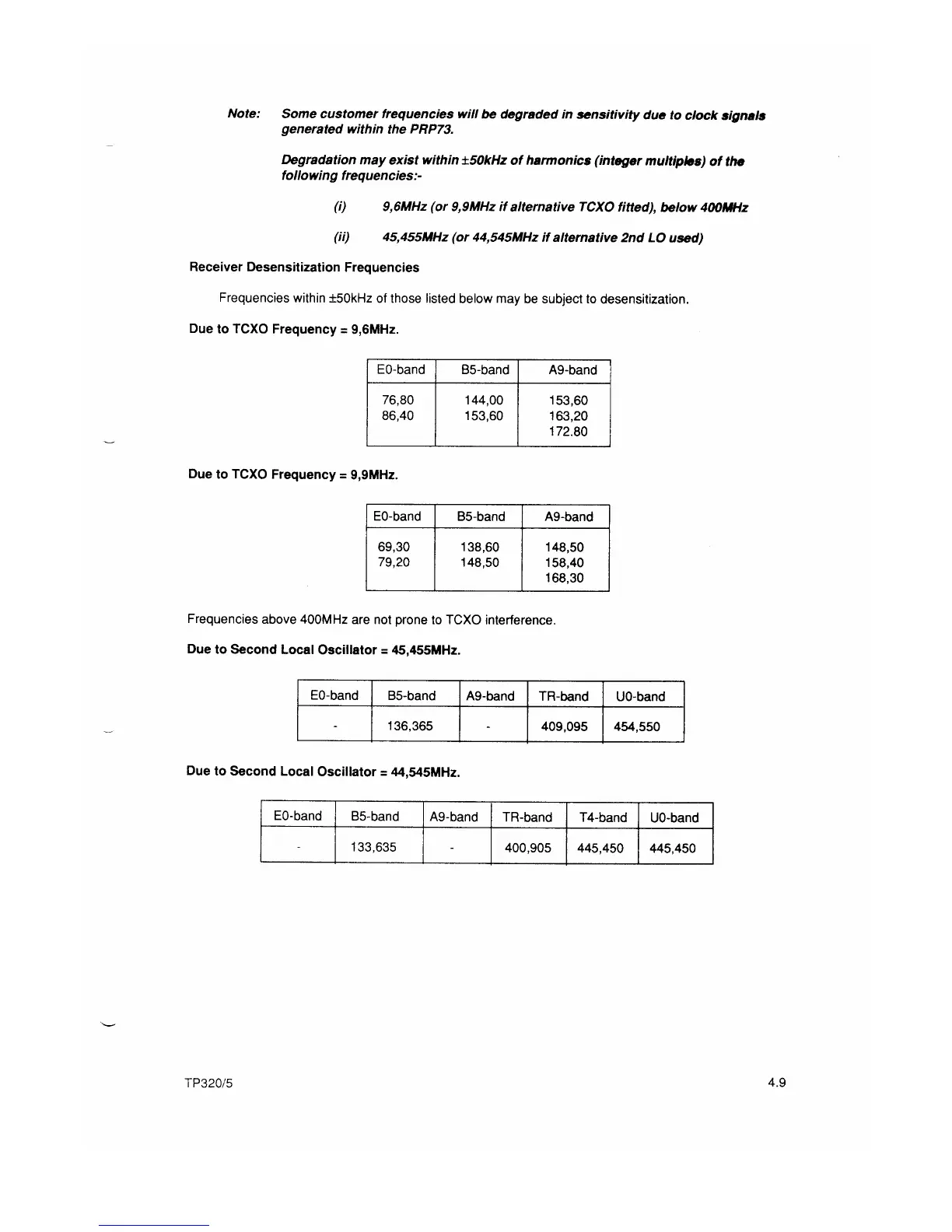 Philips PRP73 - Receiver Desensitization Frequencies