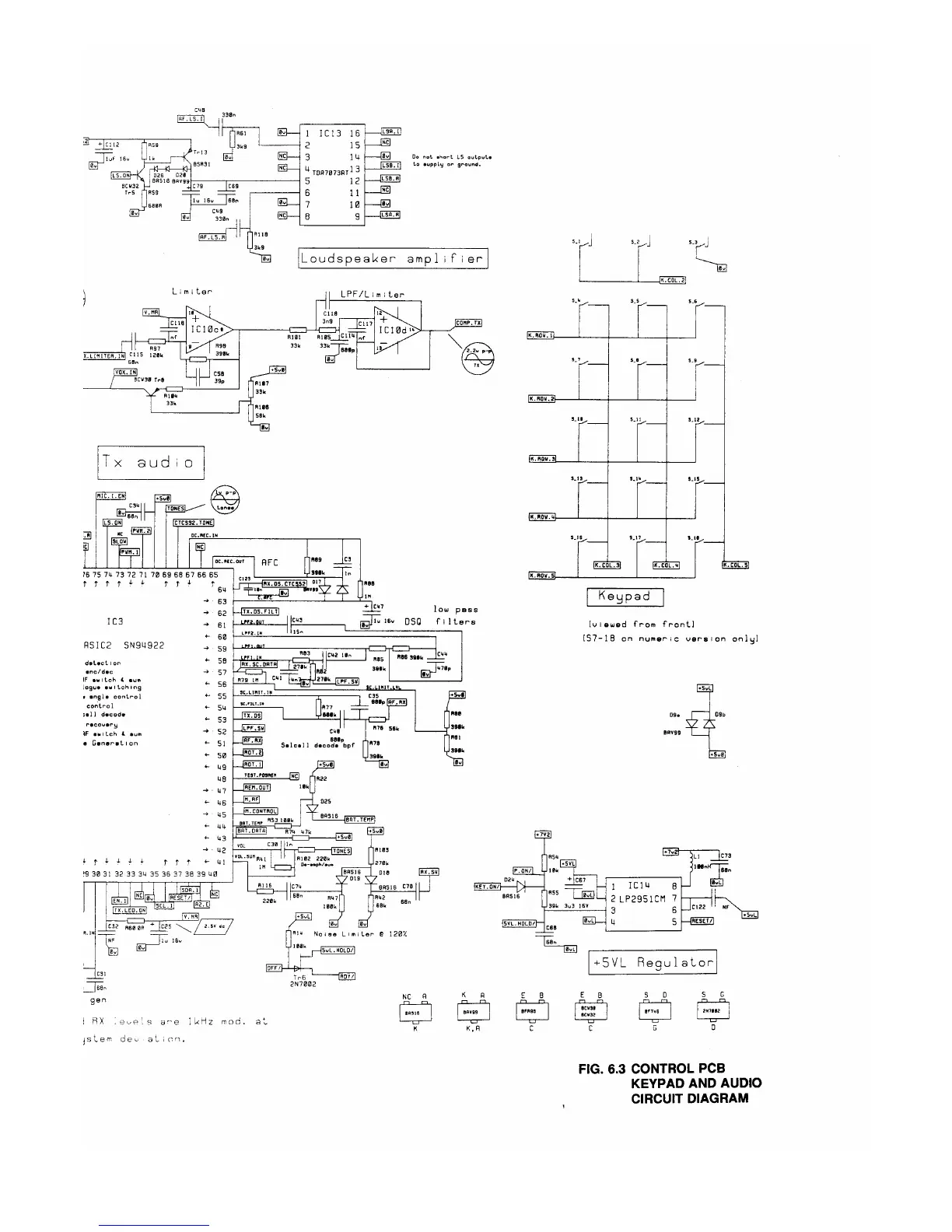 Philips PRP73 - Control PCB Keypad and Audio Circuit Diagram