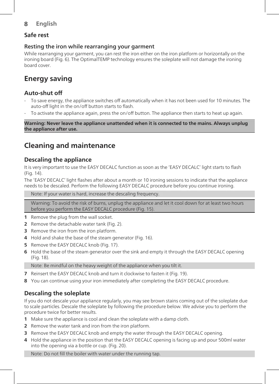 8 You can continue using your iron immediately after completing the EASY DECALC procedure.