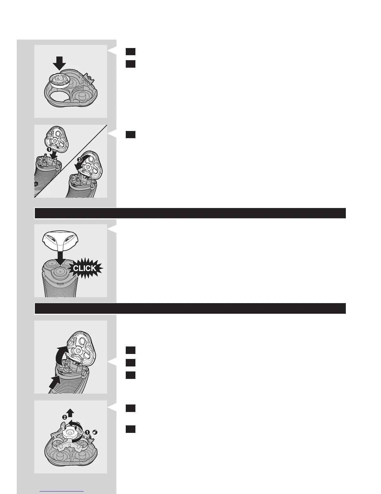 6 Tegye vissza a borotvafejeket a borotvaegységbe.