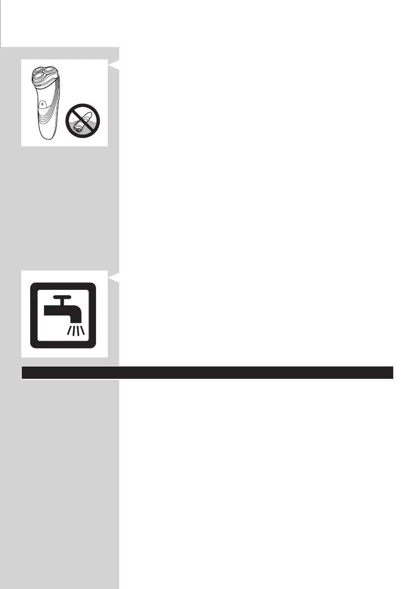 - Barbermaskinen må aldri dyppes i vann.