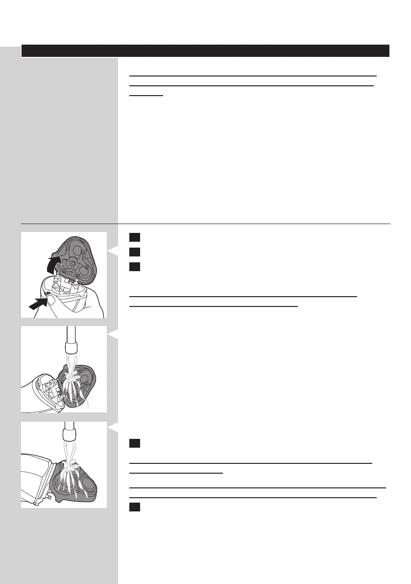 3 Enxagúe a unidade de corte e a câmara de recolha dos pêlos em