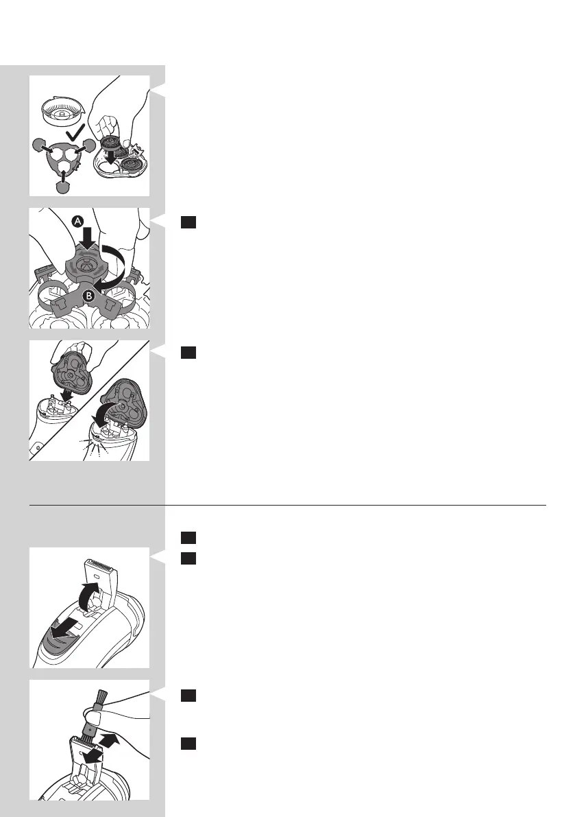 7 Rimettete la struttura di supporto nell’unità di rasatura (A) e ruotate