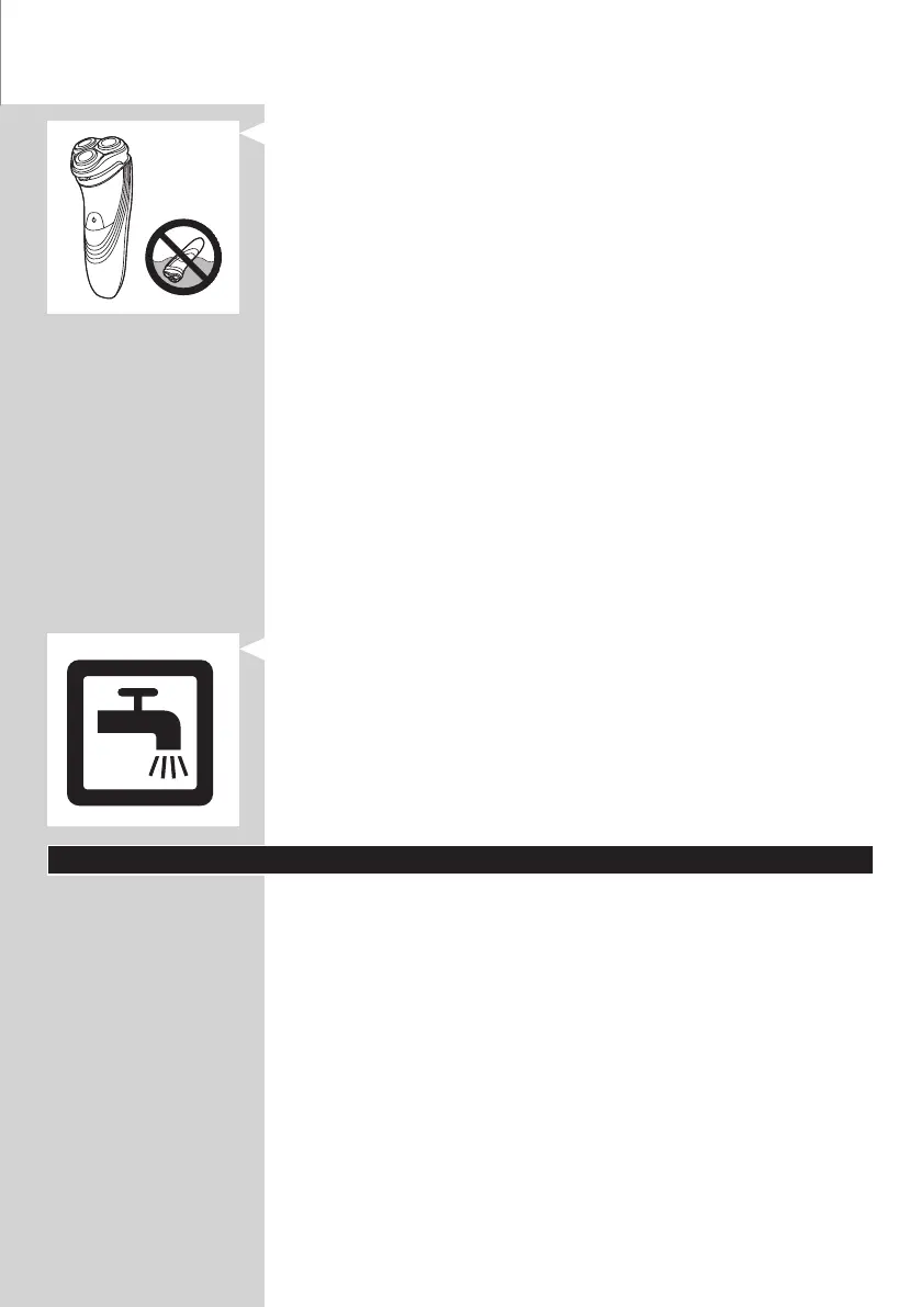 - Gebruik het scheerapparaat niet in bad of onder de douche.