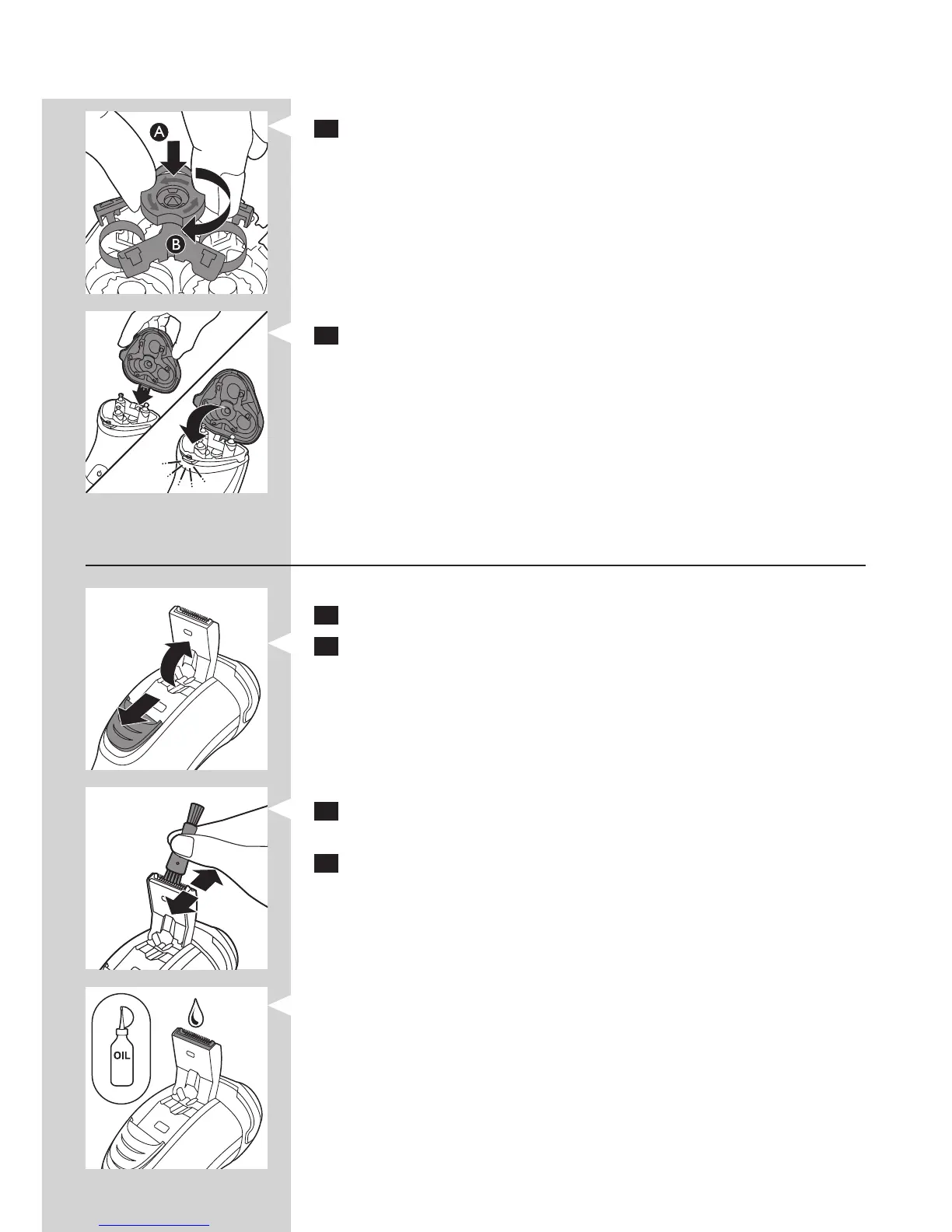 7 Put the retaining frame back into the shaving unit (A) and turn the