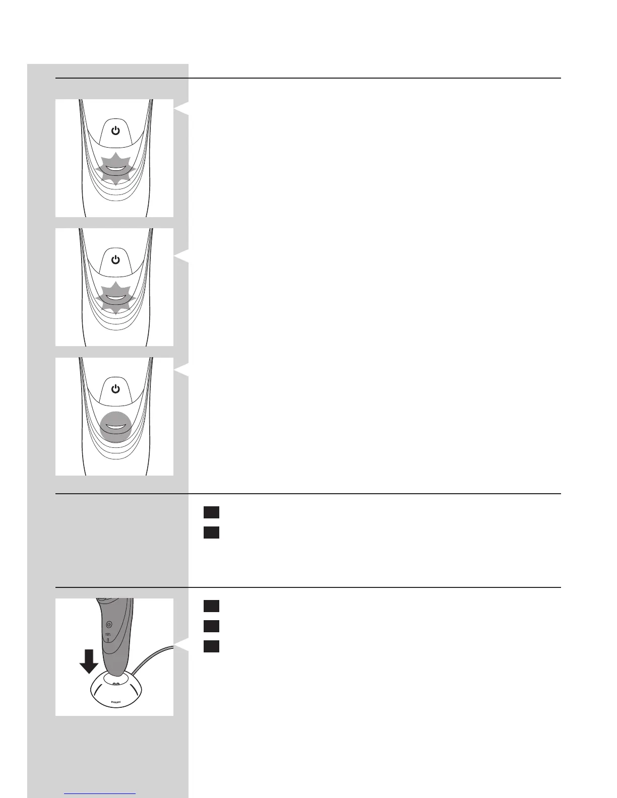 - Når shaveren oplades, blinker opladeindikatoren hvidt.