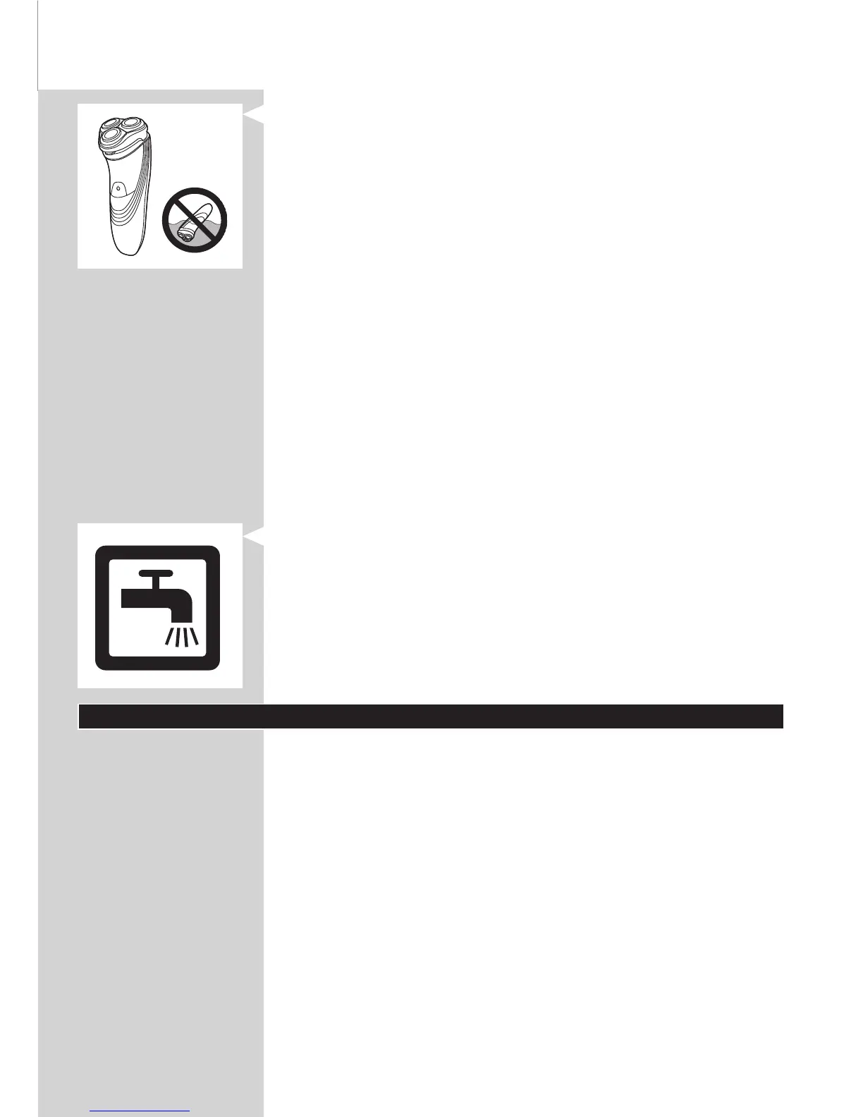 - Benutzen Sie den Rasierer nicht in der Badewanne oder Dusche.
