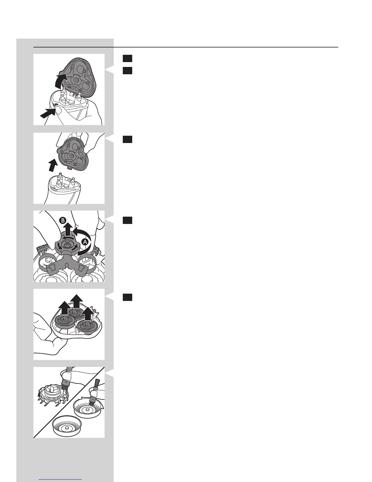 5 Retire y limpie los cabezales de afeitado de uno en uno. Cada cabezal