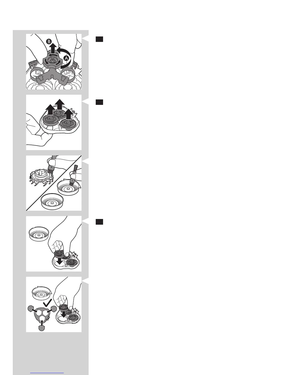 5 Irrota ja puhdista yksi teräyksikkö kerrallaan. Kussakin teräyksikössä