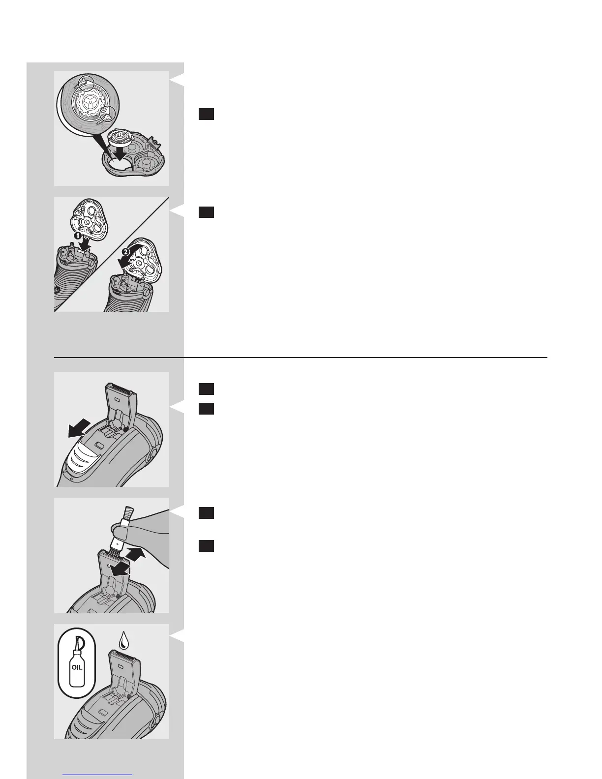 Note: Make sure that the projections of the shaving heads t exactly into the