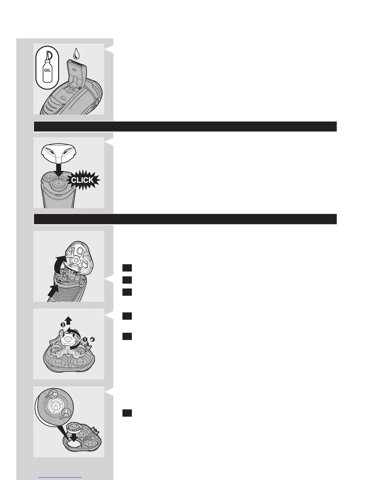 5 Entnehmen Sie die Scherköpfe, und setzen Sie neue Scherköpfe in die