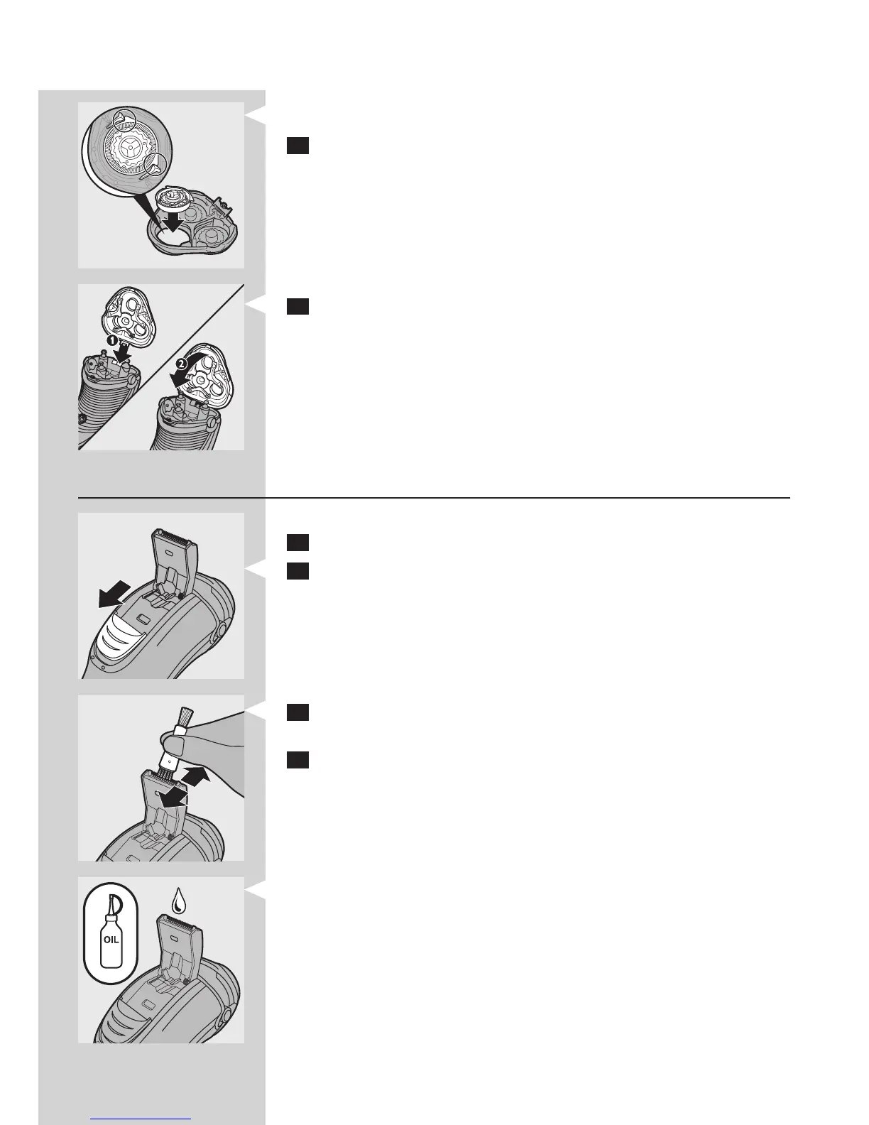 8 Aseta ajopään kieleke parranajokoneen päällä olevaan aukkoon (1).