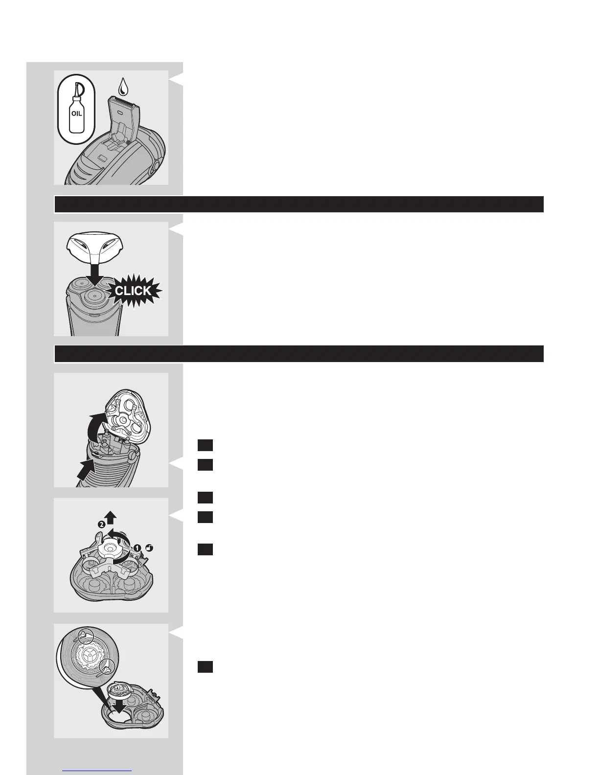 6 Replacez le système de fixation sur l’unité de rasage, puis faites-le