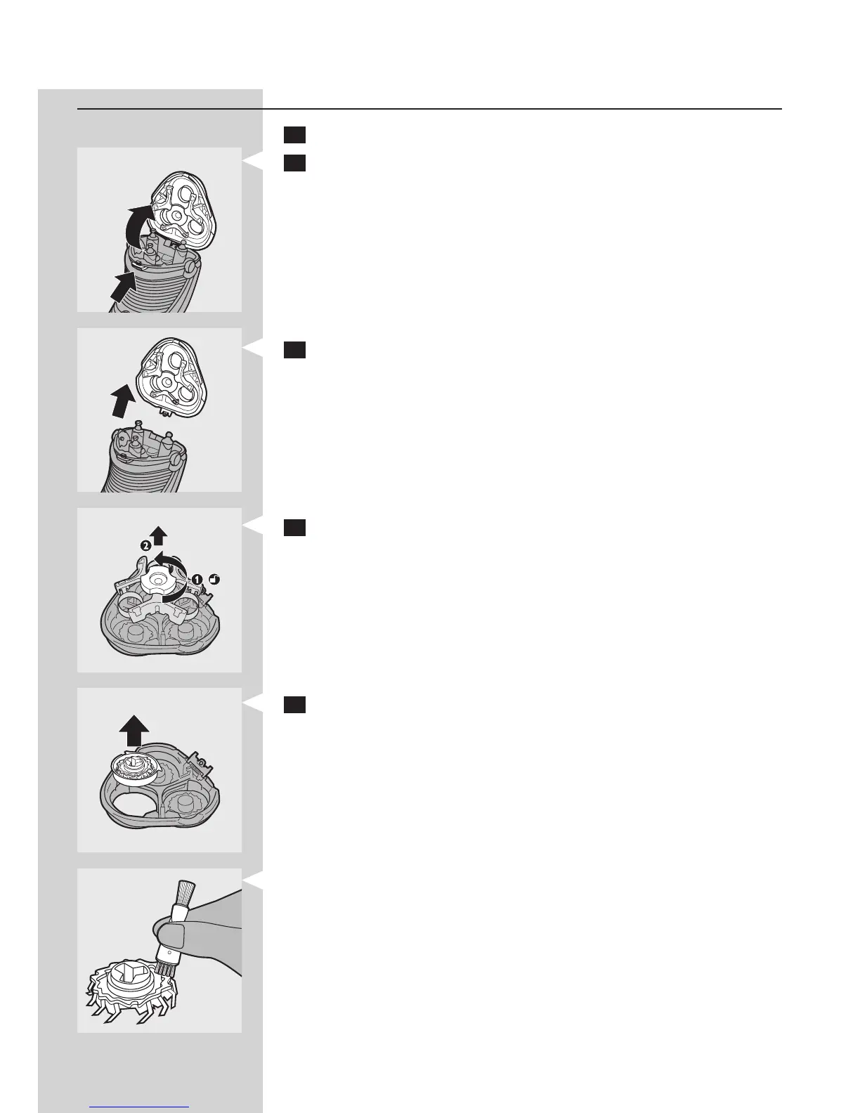 5 Verwijder en reinig één scheerhoofd tegelijk. Elk scheerhoofd bestaat