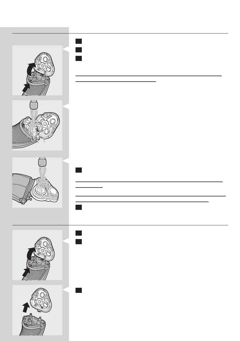 5 Open the shaving unit again and leave it open to let the shaver dry