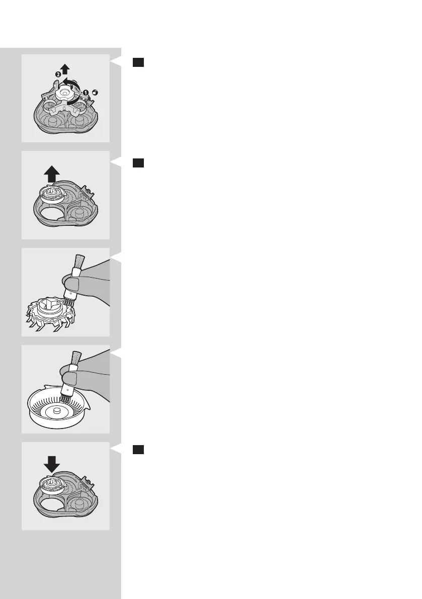 5 Remove and clean one shaving head at a time. Each shaving head
