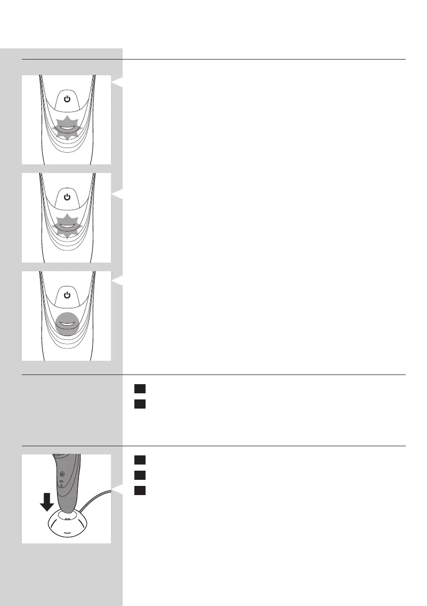 - Når shaveren oplades, blinker opladeindikatoren hvidt.