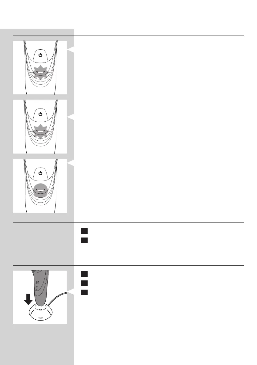- Wenn Sie den Rasierer ausschalten, blinkt die Ladeanzeige einige