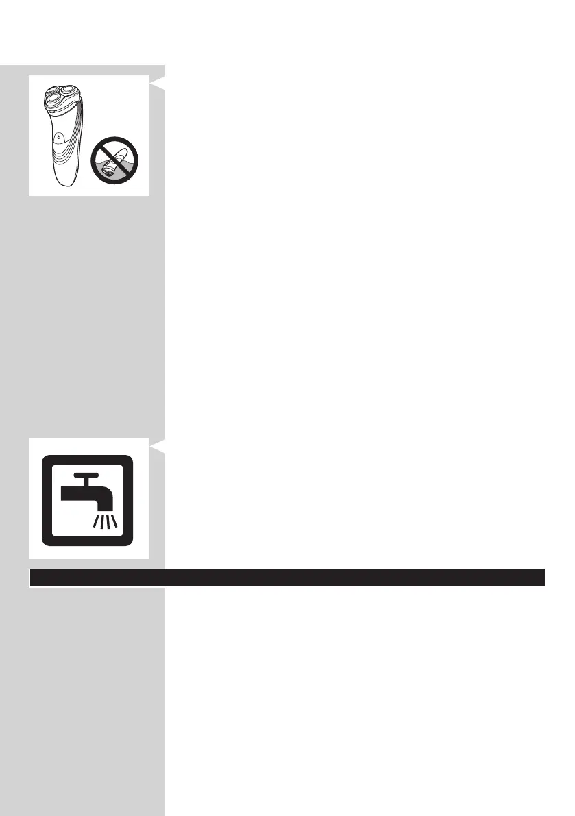 - Μην βυθίζετε ποτέ την ξυριστική μηχανή σε νερό.