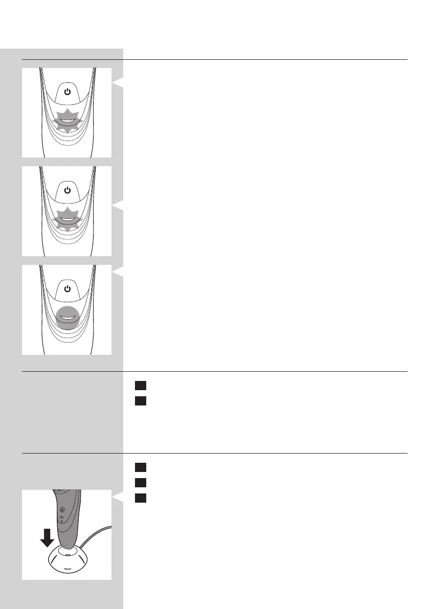 - Quando il rasoio è in ricarica, la relativa spia lampeggia in bianco.