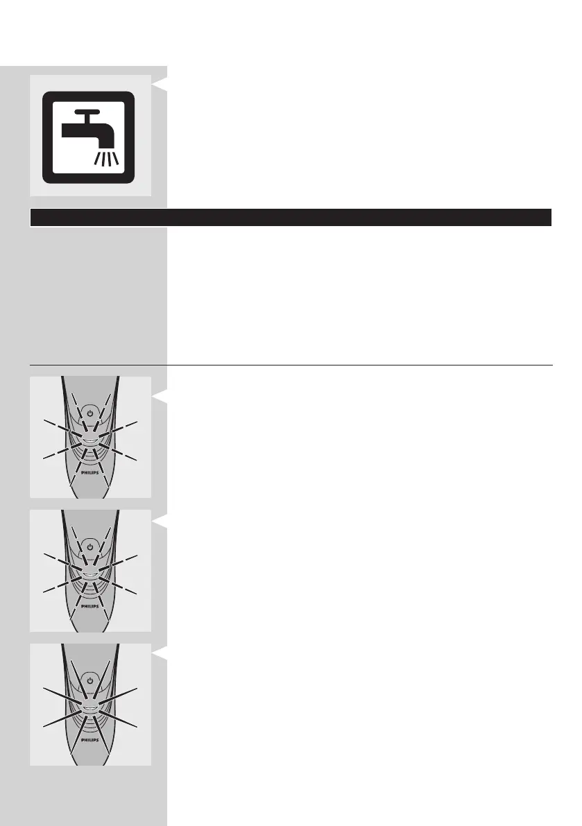 - เมื่อปดเครื่องโกนหนวด ไฟแสดงการชารจจะกะพริบเปนสีสมตอเนื่องประมาณสองสามวินาที
