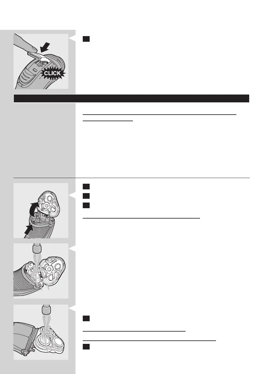 3 ทำาความสะอาดชุดหัวโกนและชองเก็บเศษหนวดดวยนอนจากกอกนเปนเวลา 30 วินาที