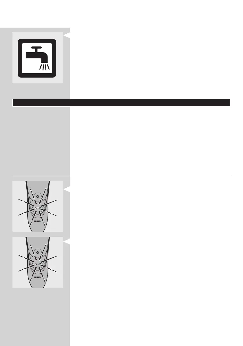 - 本電鬍刀符合國際公認的 IEC 安全標準,可以直接在水龍頭之