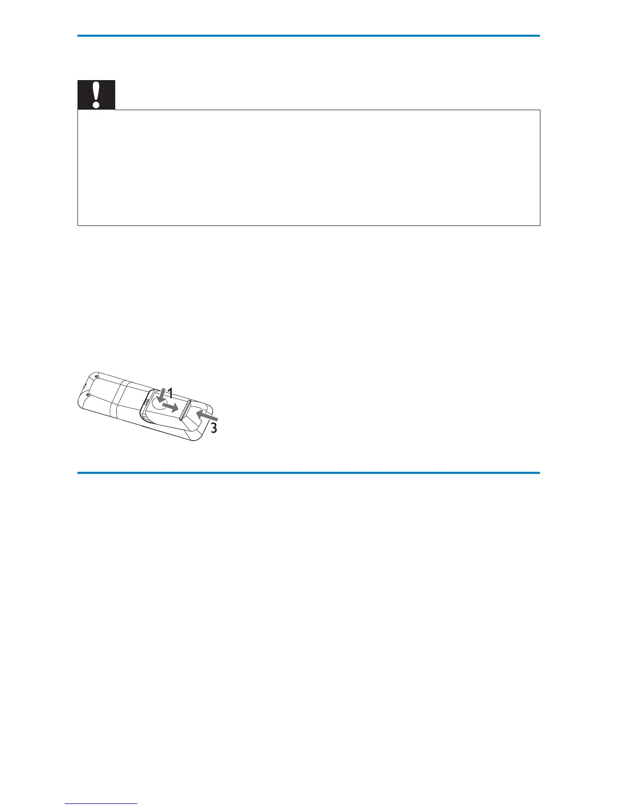 1 Press and push the battery compartment to slide it open (see “1” in