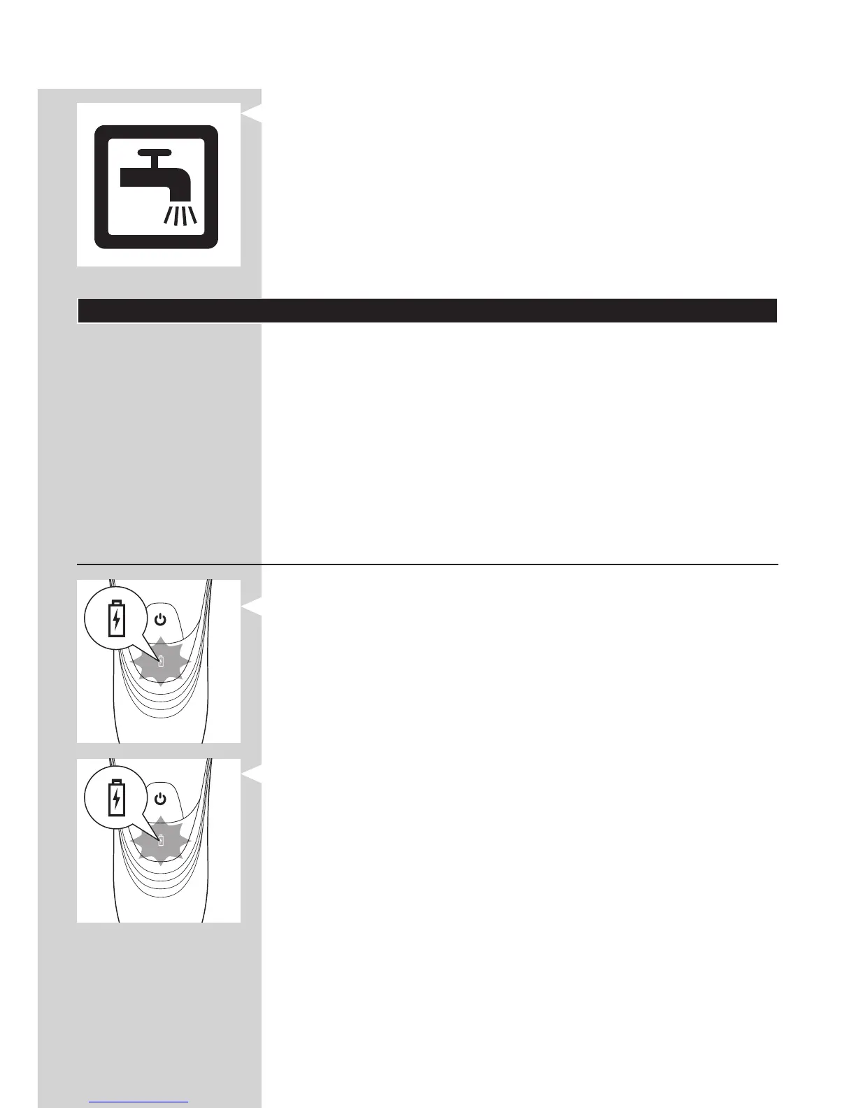 - Lorsque vous éteignez le rasoir, le voyant de batterie continue à